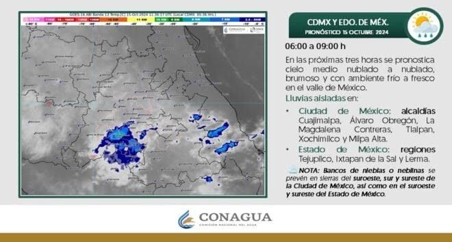 El pronóstico meteorológico prevé que el termómetro oscile entre los 4 y 6 grados Centígrados en las alcaldías Álvaro Obregón, Cuajimalpa, Magdalena Contreras, Milpa Alta y Tlalpan.