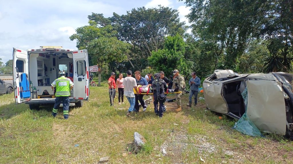 Córdoba, Ver – La colisión, despiste y volcadura ocurrida esta tarde en el kilómetro 293 de la autopista Orizaba-Veracruz entre un automóvil Tsuru y un vehículo de una aseguradora, dejó como saldo una persona herida y otra más policontundida.