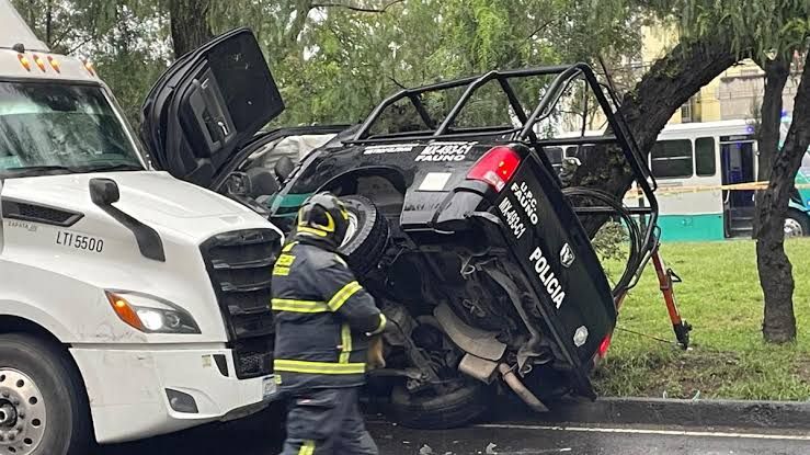 || Un tráiler chocó a una patrulla que circulaba en sentido contrario sobre la Calzada Ignacio Zaragoza y le causó la muerte a un policía