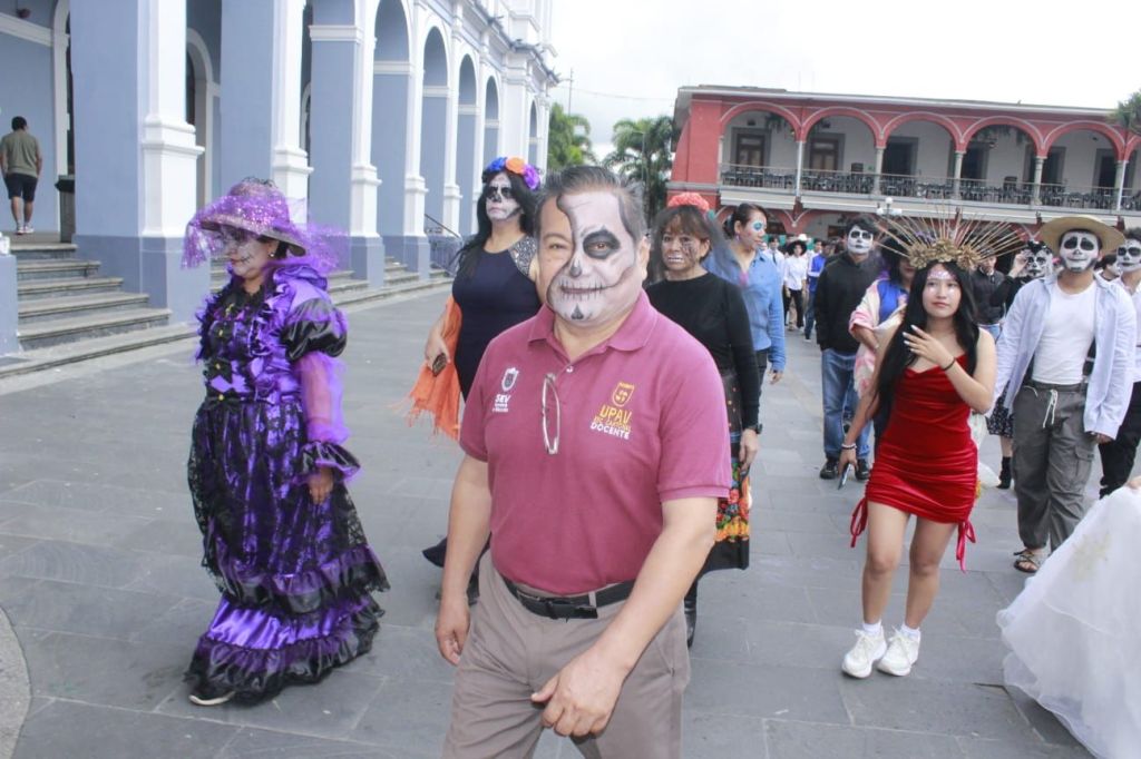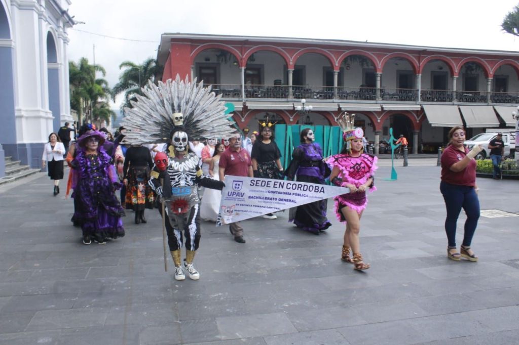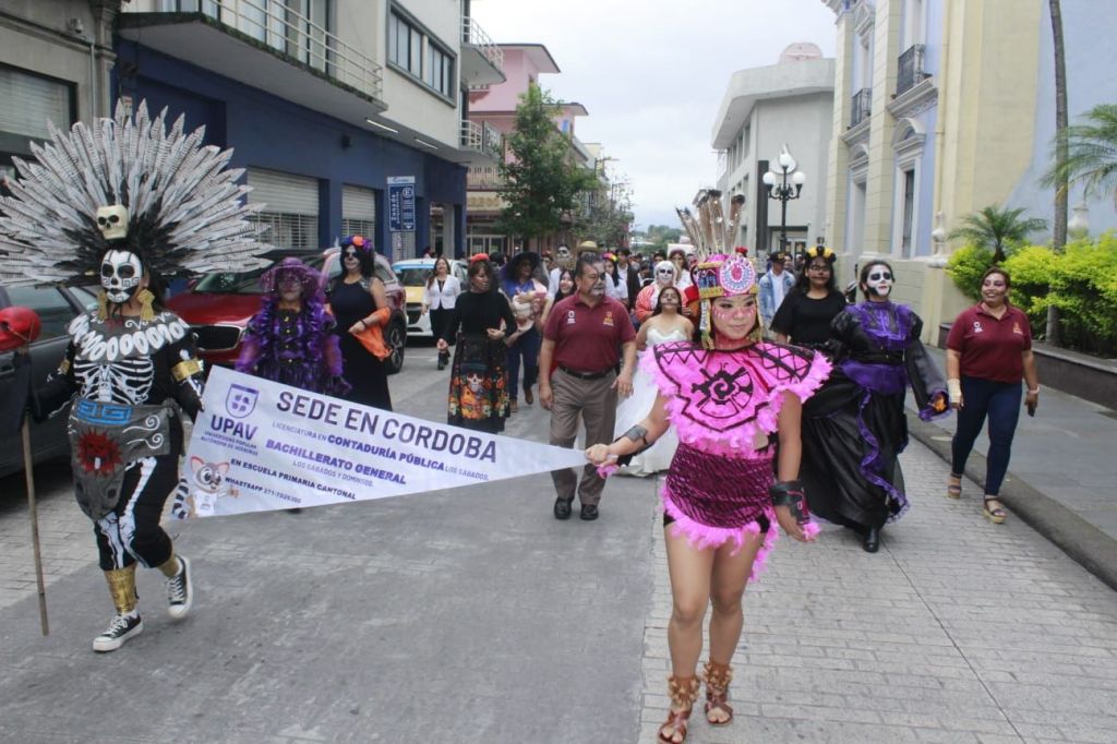 Córdoba Ver – El pasado fin de semana alumnos de la Universidad Popular Autónoma de Veracruz «UPAV» participaron en el desfile de Día de Muertos, a través de un recorrido por las principales calles de la ciudad catrinas y catrines, personal docente a cargo del director Moisés Hernández Velázquez, quien destaco que esta casa de estudios se preocupa por fomentar las tradiciones.