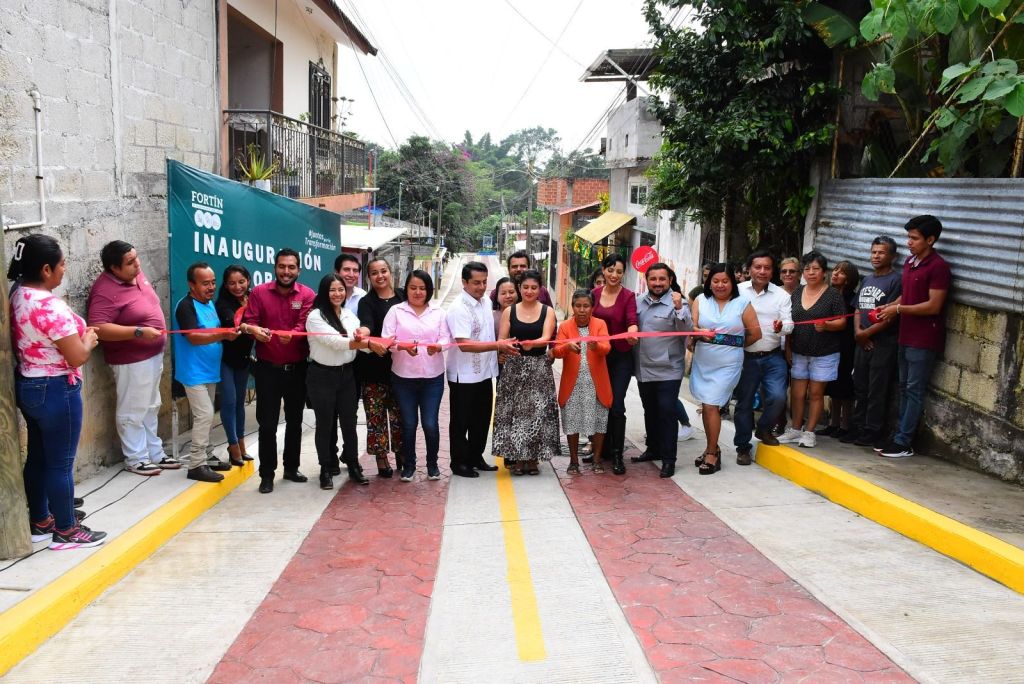 Fortín.- El presidente municipal Gerardo Rosales Victoria, acompañado del cuerpo edilicio, vecinos y su esposa la presidenta del DIF, Olga Juárez Rodríguez inauguraron dos importantes obras que forman parte del Proyecto de la Transformación de Fortín, las cuales se ubican en camino a Unidad las Flores y colonia San José, ambas realizadas con recursos provenientes del Fondo de Aportaciones para la Infraestructura Social Municipal y de las Demarcaciones Territoriales del Distrito Federal (FAISMUN). “La Transformación llegó a la colonia San José y a Fortín, gracias a un hombre que usó la educación como su medio para superarse y la política para servir a los demás, se trata del profesor Gerardo” expresó la profesora Minerva Rodríguez Vetansos vecina del lugar y en representación de los beneficiados de la obra. Por otra parte, el munícipe reiteró el compromiso con los fortinenses a través del Proyecto de la Transformación, con el cual se busca atender necesidades de rezago en infraestructura social y asimismo brindar las condiciones a los vecinos para tener mejores vías de comunicación y mejorar su calidad de vida.