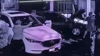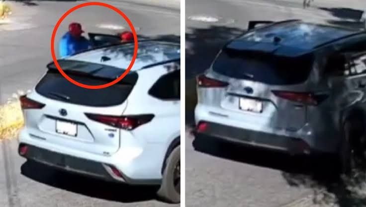 Una cámara de seguridad captó el momento en que un Tsuru detiene la marcha previo a incorporarse a una avenida principal, impidiendo avanzar a una camioneta. Del vehículo descendieron cuatro sujetos armados, quienes ordenaron a la conductora de la camioneta bajarse. Para apresurar el robo dispararon en dos ocasiones al aire.