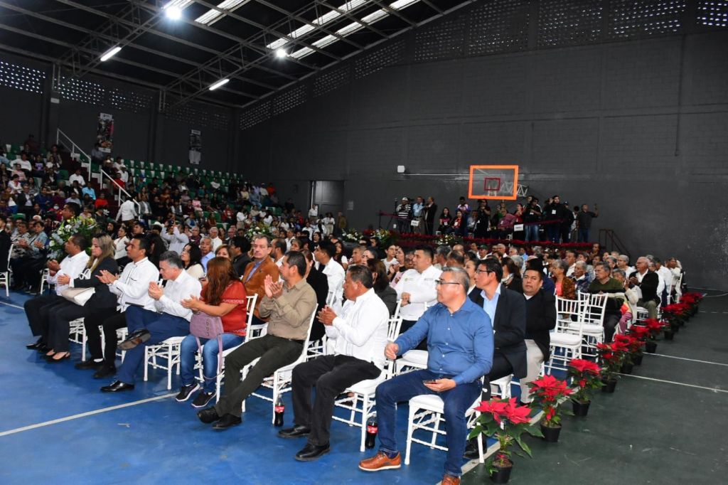 En el auditorio de la unidad deportiva Eliezer Morales se llevó a cabo está ceremonia solemne, seguida del informe del DIF municipal emitido por la presidenta Sra. Olga Juárez Rodríguez, ahí la escolta y banda de guerra del COBAEV Fortín se encargaron de realizar los honores a la bandera.