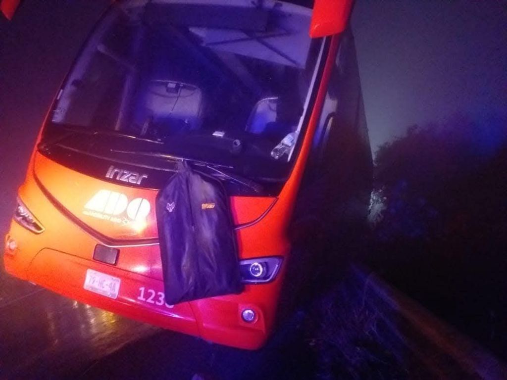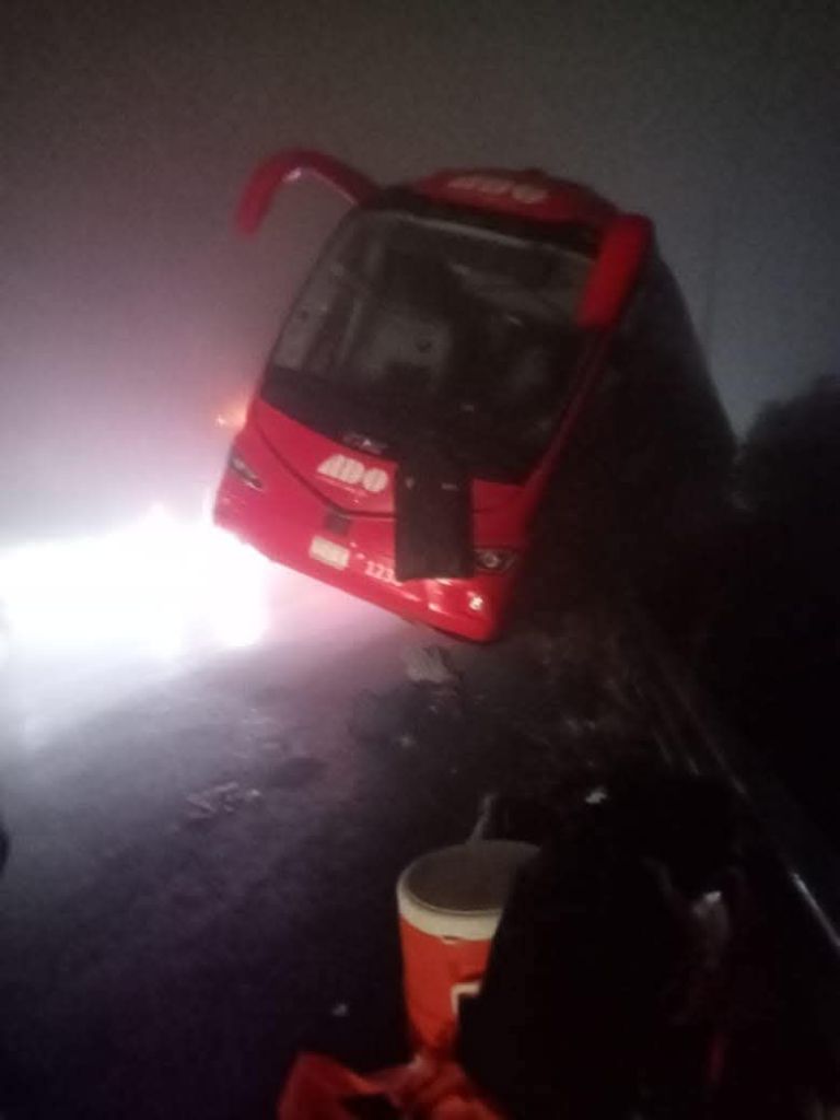 Un autobús de la línea ADO estuvo a punto de caer a un barranco de casi 60 metros de profundidad, cuando circulaba en la carretera federal