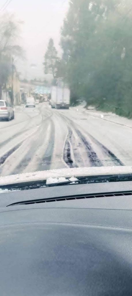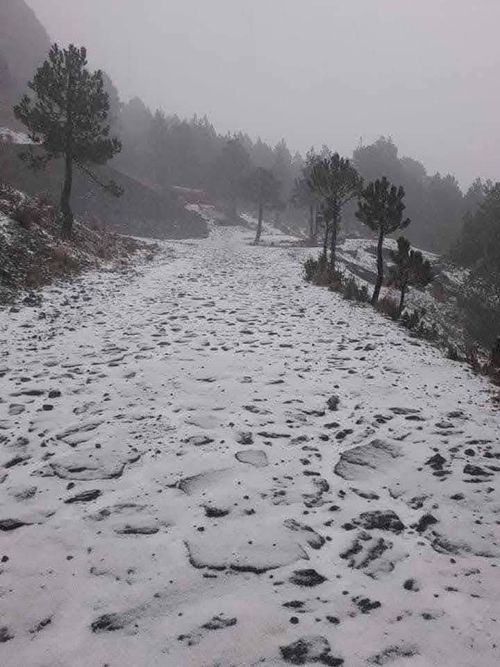 No solo las calles de la comunidad y los bosques, se llenan de nieve sino también sobre la autopista México-Puebla.
