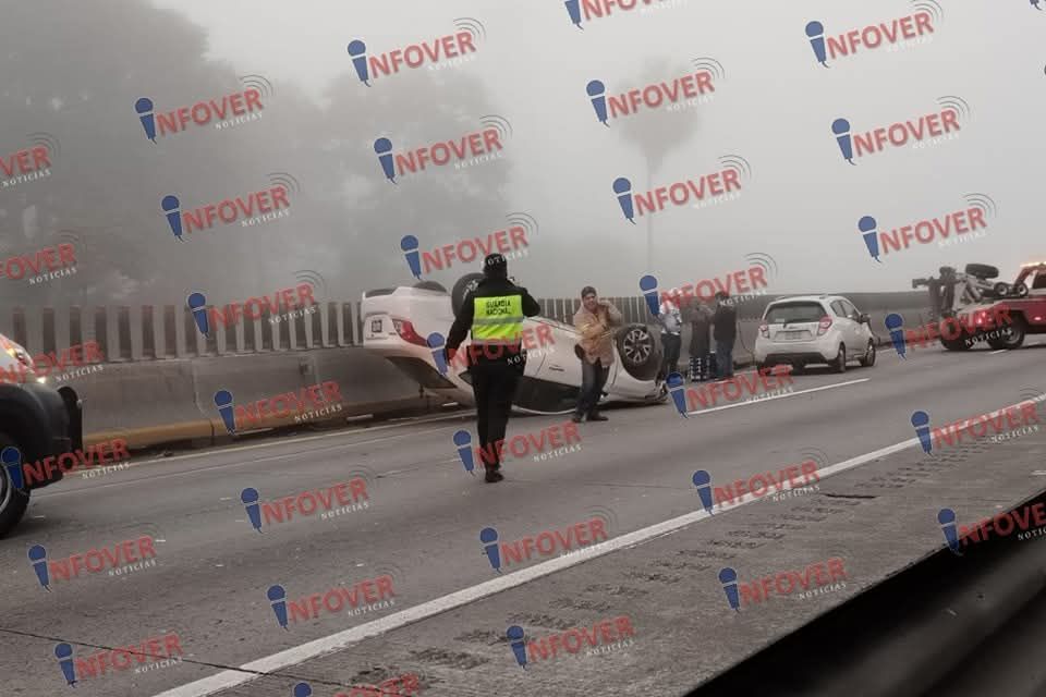 Córdoba, Ver – La mañana de jueves de accidentes sobre la Autopista México – Veracruz, el primer accidente automovilístico se registró en el km. 293 antes del Trébol de Amatlán, a la altura de la Tranca de Tubos, dejando como saldo únicamente daños materiales que ascienden a miles de pesos, donde un automóvil tipo versa en color blanco el cual terminó volcado después de que su conductora perdiera el control del vehículo.