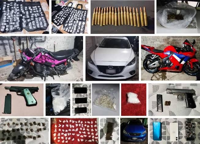 Además, las fuerzas federales aseguraron diversas dosis de cocaína, mariguana, metanfetamina, dos equipos telefónicos y un vehículo de la marca BMW.