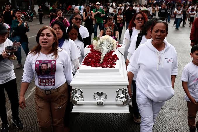 Escoltado por decenas de activistas y familiares, un ataúd blanco cubierto de pétalos de rosa descendió de una carroza blanca, en las inmediaciones de la avenida Reforma, en el corazón de la capital.