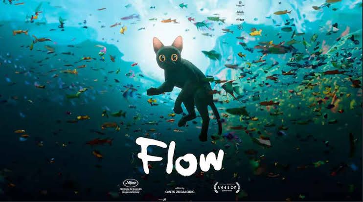 La película animada Flow cuenta la historia de un valiente gato que tras una devastadora inundación debe tratar de sobrevivir y en su trayecto, se encuentra con otros animales y juntos emprenden un viaje maravilloso a través de reinos naturales y místicos.
