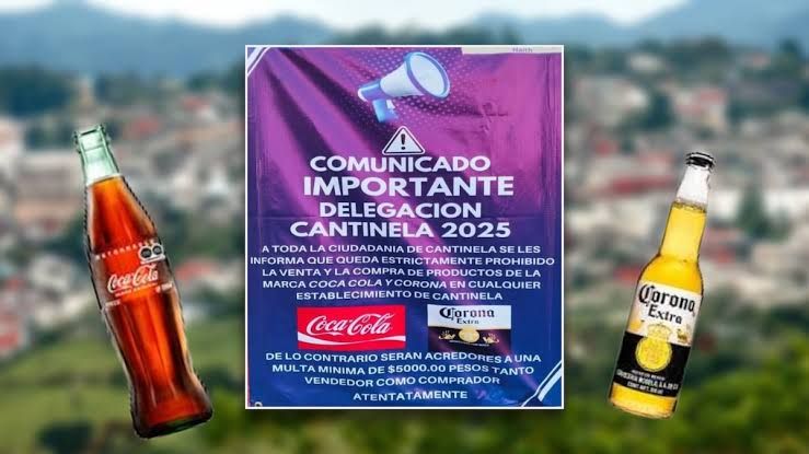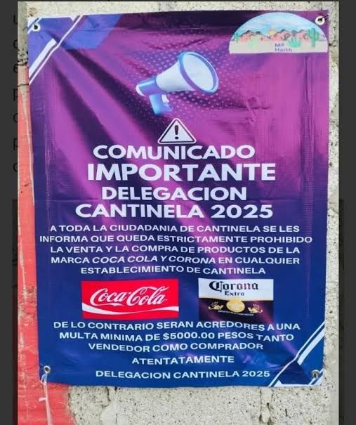 A través de lonas puestas en diversos puntos de la ciudad, se le hizo un llamado a los habitantes a no consumir estos productos. En caso de no acatar, tanto vendedores como consumidores podrían tener multas de hasta cinco mil pesos. «A toda la ciudadanía de Cantinela se les informa que queda estrictamente prohibida la venta y la compra de productos de la marca coca cola y corona en cualquier establecimiento de Cantinela», se lee en las lonas colgadas.