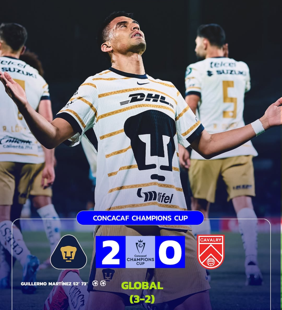Pumas logró su pase a los Octavos de Final de la Concacaf Champions Cup tras vencer 2-0 al Cavalry FC de Canadá en el Estadio Olímpico Universitario, cerrando la serie con un global de 3-2 a favor del equipo universitario.