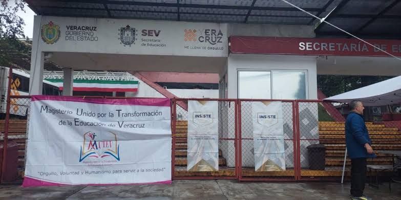 Xalapa, Ver – Integrantes de la Unión de Sindicatos Magisteriales del Estado de Veracruz (USMEV), encabezado por el secretario general del Gremio Nacional de Trabajadores de la Educación (GNTE) Avith Moctezuma Uscanga, tomaron la mañana de este martes las instalaciones de la Secretaria de Educación de Veracruz (SEV) en Xalapa.