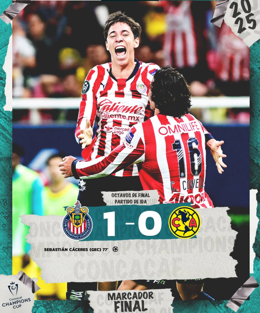 El tanto de la victoria fue obra del uruguayo Sebastián Cáceres en propia meta al minuto 76. Para avanzar los tapatíos requieren el empate por cualquier marcador o triunfo; las “Águilas” están obligados a ganar por 2 goles.