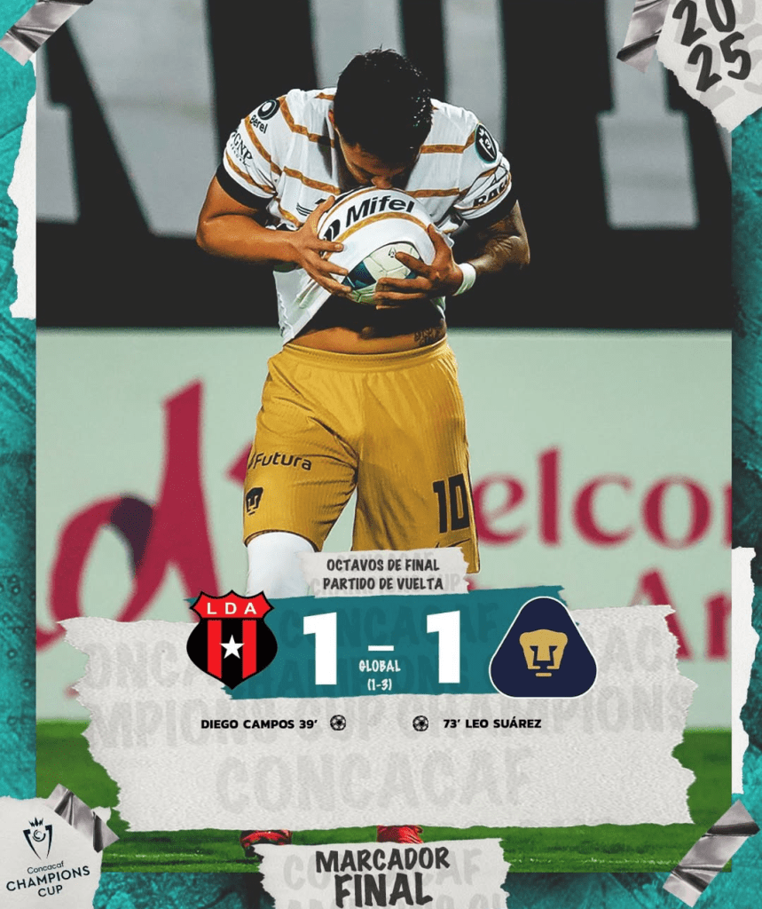 Pumas avanzó a Cuartos de Final de la CONCACAF Champions Cup tras dejar en el camino al Alajuelense. A pesar de empatar el partido de Vuelta, los Felinos ganaron en el global 3-1 y avanzaron a la siguiente ronda donde enfrentarán a Vancouver Whitecaps.