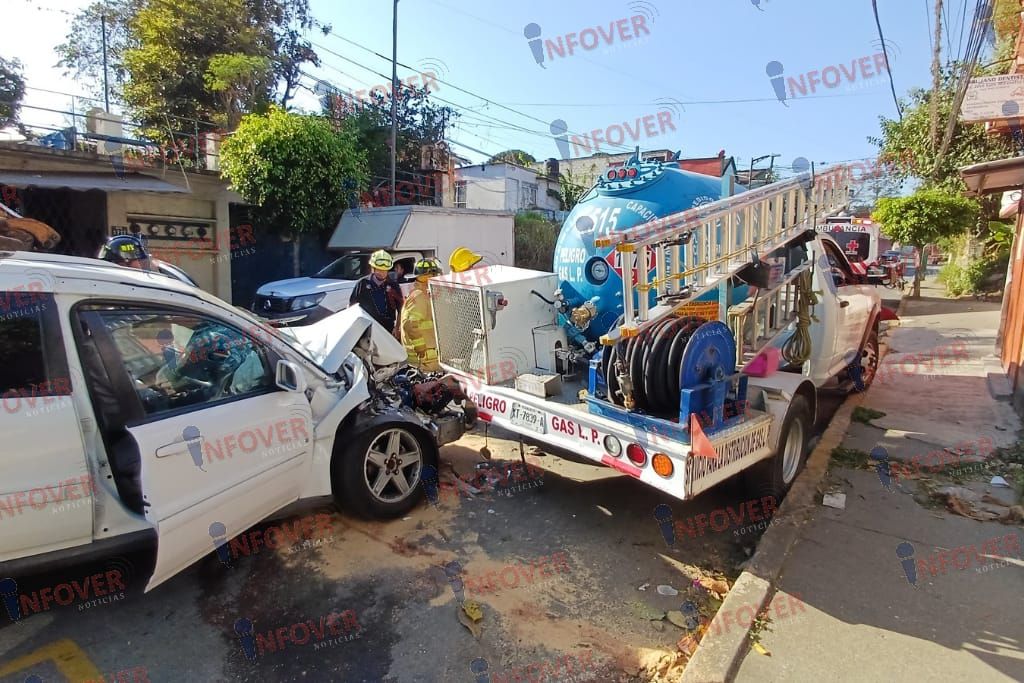 Córdoba, Ver – La mañana de este sábado dos personas resultaron lesionadas, luego de un aparatoso accidente en el cual estuvo involucrada una camioneta particular así como una pipa la cual transportaba gas LP.