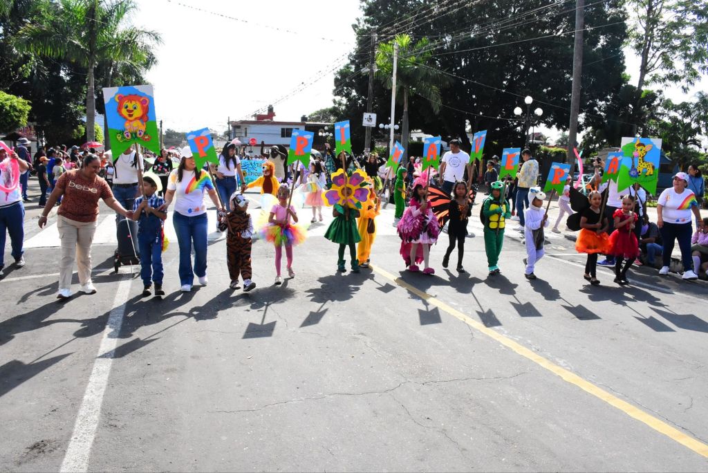Los niños y niñas vistieron elegantes trajes alusivos a flores, mariposas, animalitos de la granja, abejas, así como también, hubo escuelas que representaron el colorido cultural y artístico de diversos países.