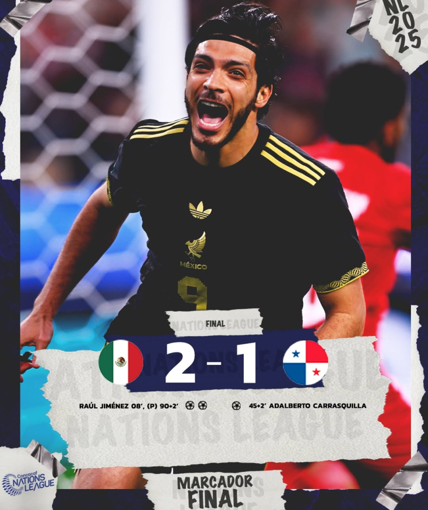 En el segundo tiempo, los dirigidos por Javier Aguirre intentaron retomar la ventaja en repetidas ocasiones. Sobre el final del tiempo regular en un tiro libre de Luis Chávez, se marcaría una mano de un defensor panameño dentro del área. Raúl Jiménez convertiría el 2-1 en favor de la Selección Nacional de México y el gol que nos consagraría como campeones de la Liga de Naciones de Concacaf por primera vez.