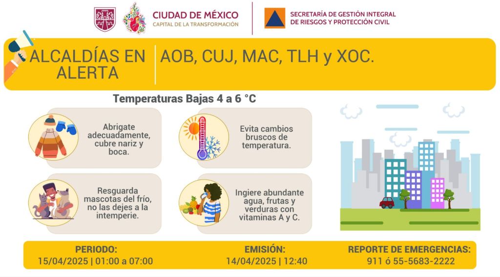 || Protección Civil de la CDMX activó las Alertas Naranja y Amarilla por frío para el amanecer del miércoles 16 de abril