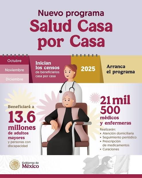 La presidenta de nuestro país Claudia Sheinbaum informó la puesta en marcha del programa Salud Casa por Casa, para brindar atención médica integral y periódica a adultos mayores y personas con discapacidad.