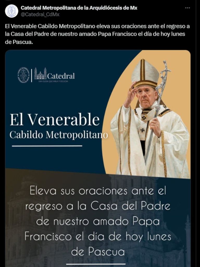 El fallecimiento del papa Francisco, primer pontífice latinoamericano y jesuita en la historia, generó manifestaciones de duelo en varias catedrales del continente. En México, país con la segunda población católica más numerosa del mundo, su figura generó especial cercanía debido a su enfoque pastoral, sus discursos en favor de los migrantes y su tono crítico frente a las estructuras de poder dentro y fuera de la Iglesia.