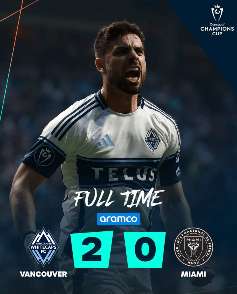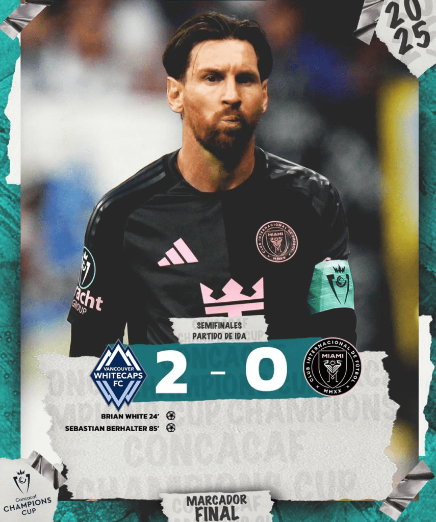 Vancouver Whitecaps aprovechó su localía y venció por 2-0 al Inter Miami de Lionel Messi y compañia en el juego de ida de las Semifinales de la Concacaf Champions Cup 2025.