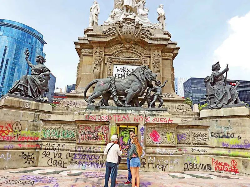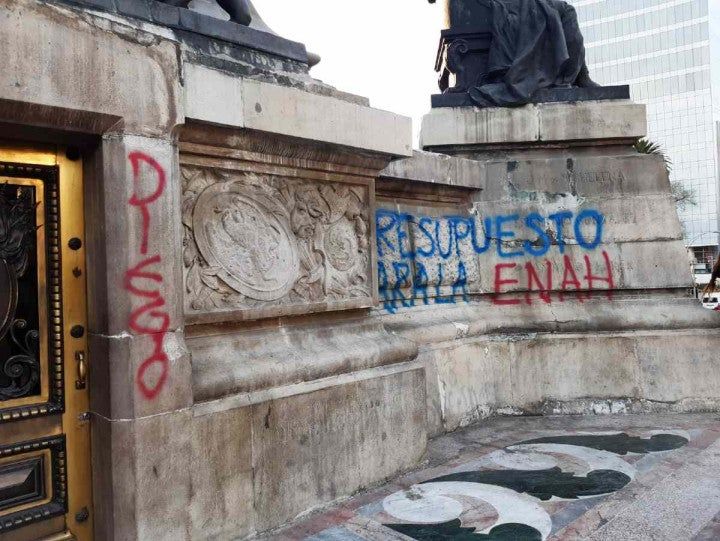 Durante la movilización, que partió del Ángel de la Independencia, un grupo de encapuchados causó daños y realizó pintas en diversos negocios.
