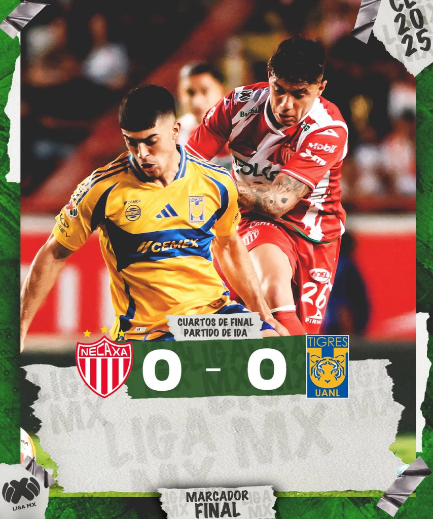 Necaxa y Tigres empataron a cero en el partido de ida de los cuartos de final del Torneo Clausura 2025.
