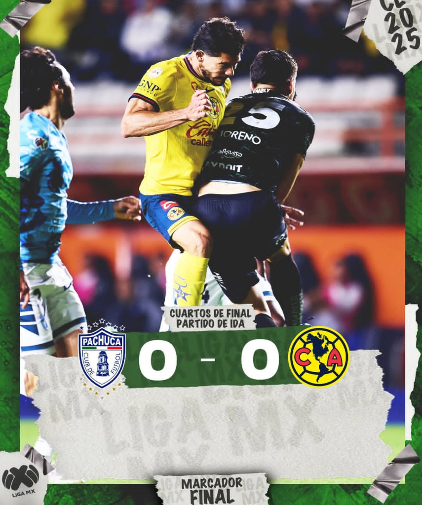 Nada para nadie en el partido de ida de los cuartos de final entre Pachuca vs América. Se llevó a cabo el partido entre Pachuca y América en la Liguilla del futbol mexicano, con los Tuzos recibiendo este compromiso en la cancha del Estadio Hidalgo. El marcador fue 0-0, aunque las emociones estuvieron presentes en gran parte del compromiso, ya que los dos equipos pudieron tener jugadas de peligro, aunque la contundencia no se presentó para ninguno de los dos en los Cuartos de Final de Ida.