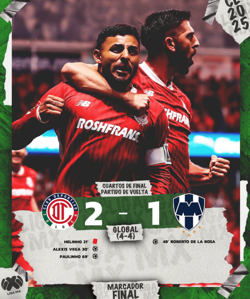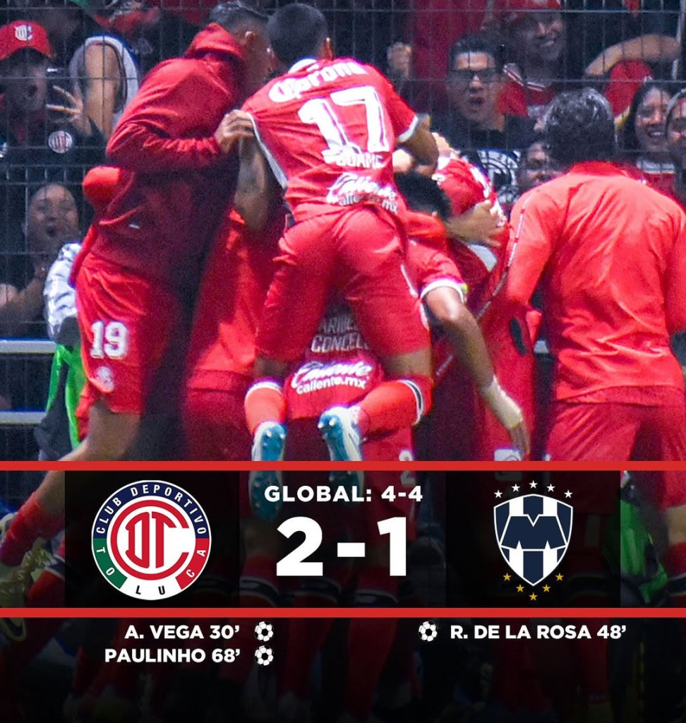 De esta manera, la eliminatoria terminó con marcador global de 4-4 y el Toluca avanzó por su mejor posición al término de la fase regular: fue líder y el Monterrey, séptimo.