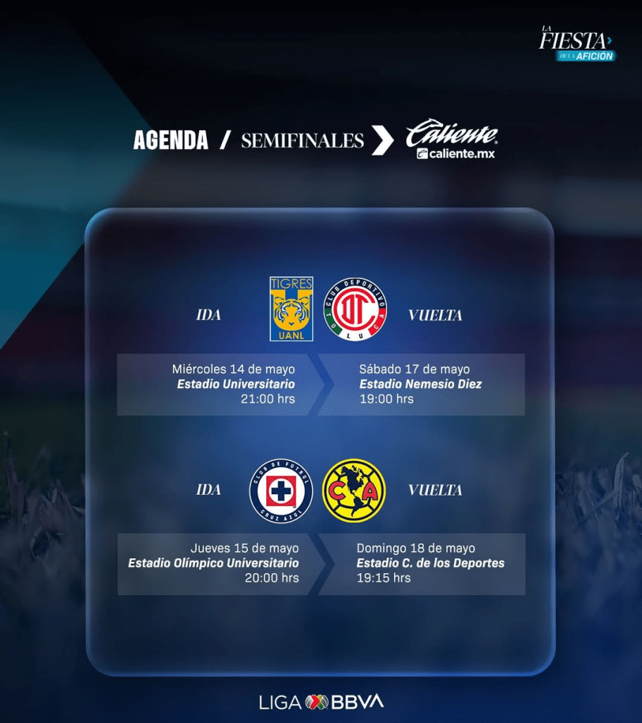 || América, Cruz Azul, Toluca y Tigres superaron la ronda de los cuartos de final, se instalaron en la antesala de la final y se encuentran a cuatro partidos de conquistar el título
