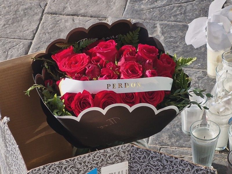 || El arreglo estaba conformado por 24 rosas rojas envueltas en papel negro, portaba un listón blanco con letras doradas que decía “Perdón”