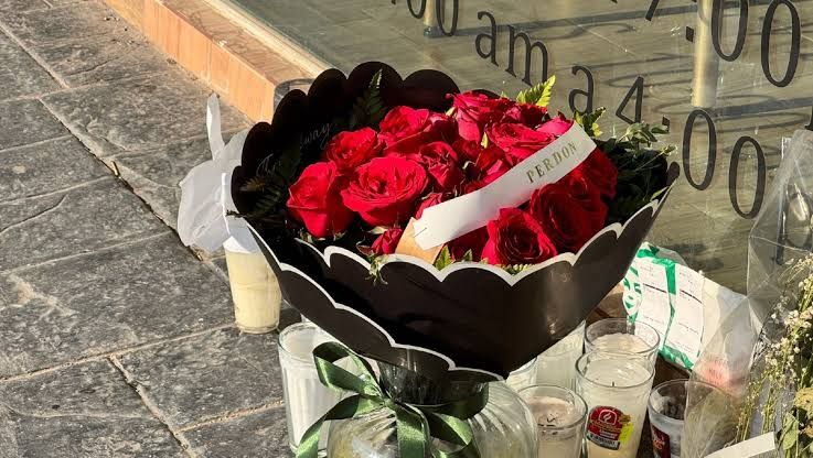 El ramo, conformado por unas 24 rosas rojas envueltas en papel negro, tenía un listón blanco con letras doradas que decía “Perdón”. Estaba colocado en un jarrón de cristal con agua, lo que llamó la atención de transeúntes y seguidores. El hallazgo se registró alrededor de las 07:00 h en la entrada del negocio, aún asegurado por la Fiscalía de Jalisco.