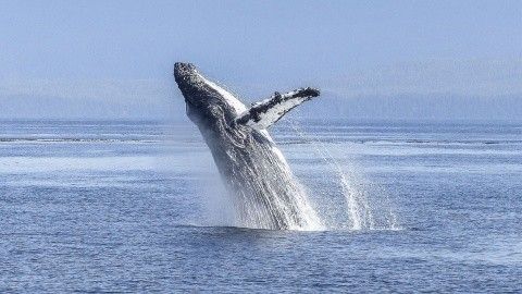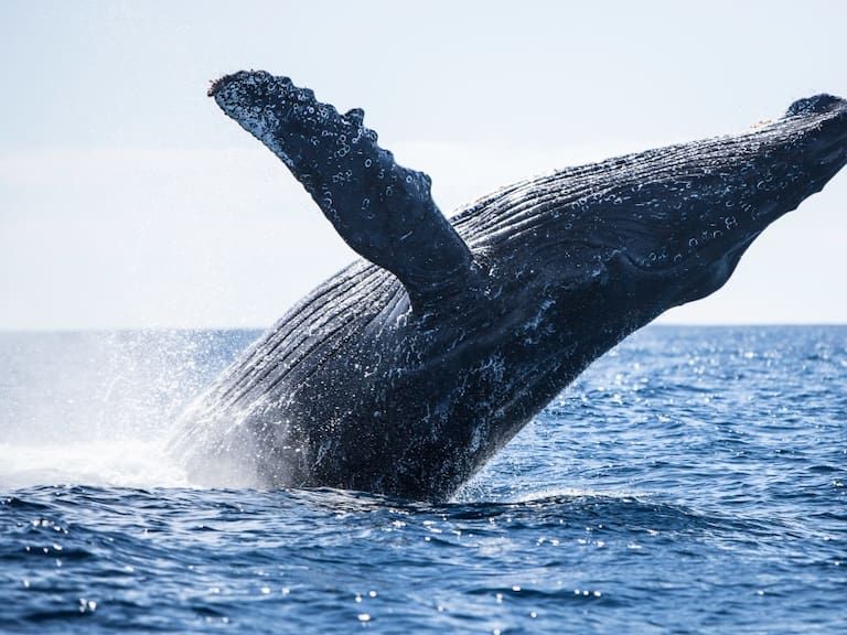 La ballena jorobada está en etapa juvenil, con una longitud aproximada de 12 metros.