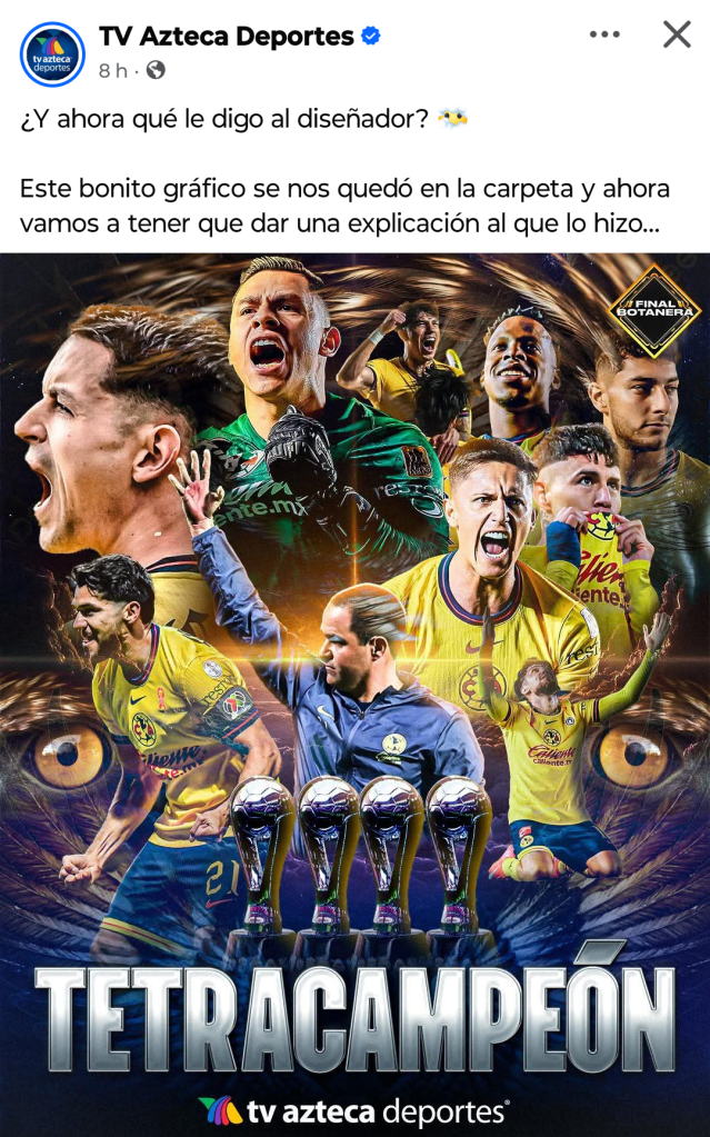 El perfil de TV Azteca Deportes se burló del segundo lugar que obtuvo el América en la final del fútbol mexicano.