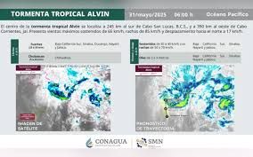 || El SMN informó que la tormenta Alvin seguirá activa por horas, pero se espera que llegue debilitada a Baja California como baja presión