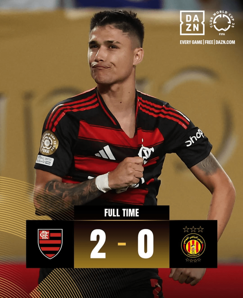 Flamengo superó 2-0 a Esperance de Túnez en su debut en el Grupo D del Mundial de Clubes 2025. El encuentro, se disputó en el Lincoln Financial Field de Filadelfia. El popular equipo brasileño manda en su zona junto al Chelsea y logró consolidar un inicio de año prometedor frente a un rival africano que también llegó con títulos recientes en su palmarés.