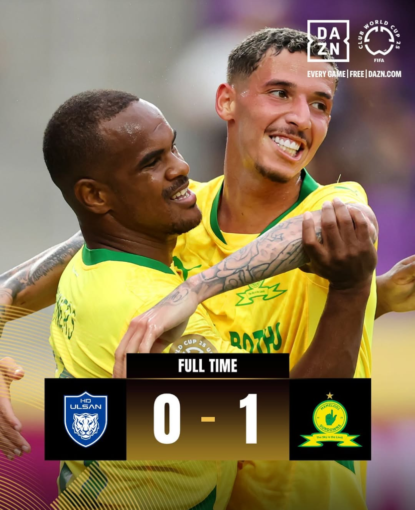 El Mamelodi Sundowns sudafricano se impuso este martes por 0-1 al Ulsan Hyundai surcoreano en el partido que bajó el telón de la primera jornada del grupo F del Mundial de Clubes, en duelo jugado en el Exploria Stadium de Orlando (Florida).