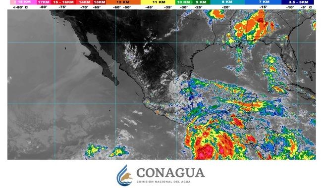 Un canal de baja presión en el sureste mexicano, interaccionará con la onda tropical núm. 4 ubicada sobre la península de Yucatán, lo que ocasionará lluvias puntuales intensas en Tabasco y Veracruz; y puntuales fuertes en Quintana Roo, Yucatán y Campeche.