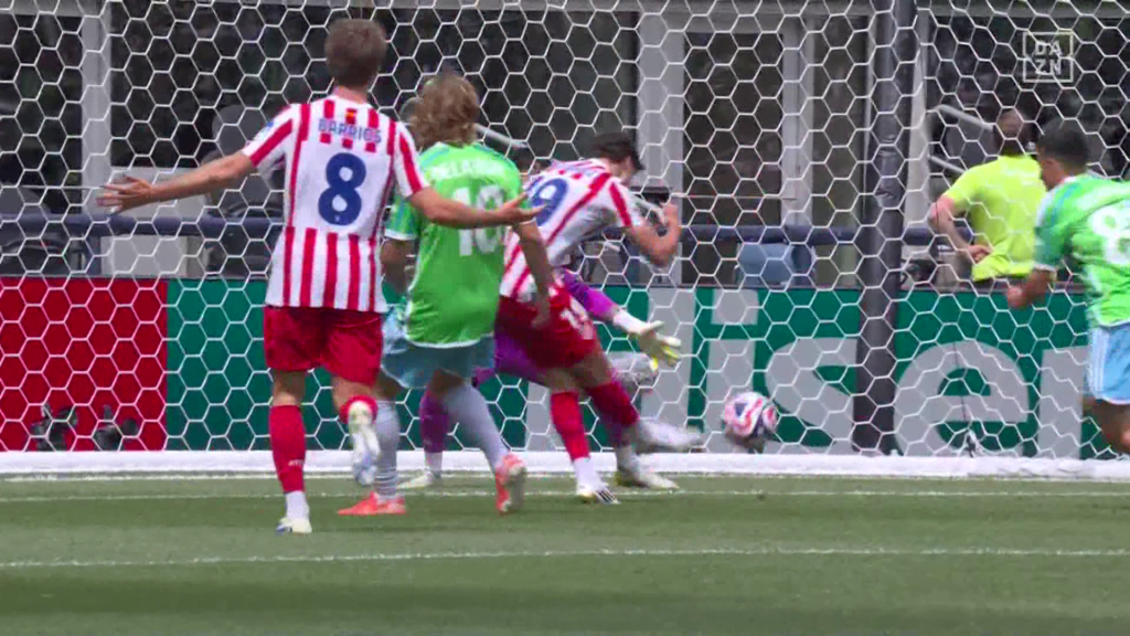 Entre medias, el Seattle avisó de que, si le dejaban, podía hacer daño. Giménez falló un despeje y pudo dar gracias a Oblak de que ganara el mano a mano con Musovski. La acción espoleó a los americanos, que vieron que si apretaban a los centrales podían rascar algo. Fueron momentos de tensión para los colchoneros, que se liberaron cuando Giuliano provocó un penalti. Cinco minutos de revisión después, fue anulado por falta previa del argentino, por hacerse hueco agarrando del brazo a su par. Con alguna oleada local y algún balón parado del Atleti se llegó al descanso.