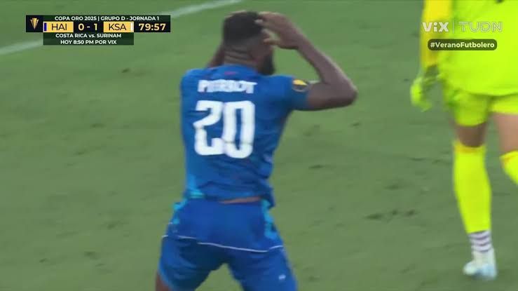 A pesar de la inferioridad numérica, apenas arrancaba la parte complementaria, cuando tras un gran centro de Louicius Deedson desde costado derecho, en el corazón del área apareció Frantzdy Pierrot para cerrar la pinza y poner el 1-0 de Haití.
