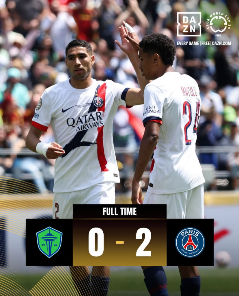 PSG hizo su trabajo, derrotó 2-0 a Seattle Sounders en el Lumen Field de Washington y se clasificó a los octavos de final del Mundial de Clubes en la primera ubicación del Grupo B.