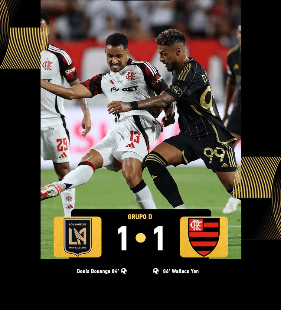 LAFC empató 1-1 con Flamengo en actividad del Grupo D del Mundial de Clubes 2025 que certificó que la escuadra brasileña avanzara a Octavos de Final como el líder de su sector.