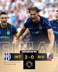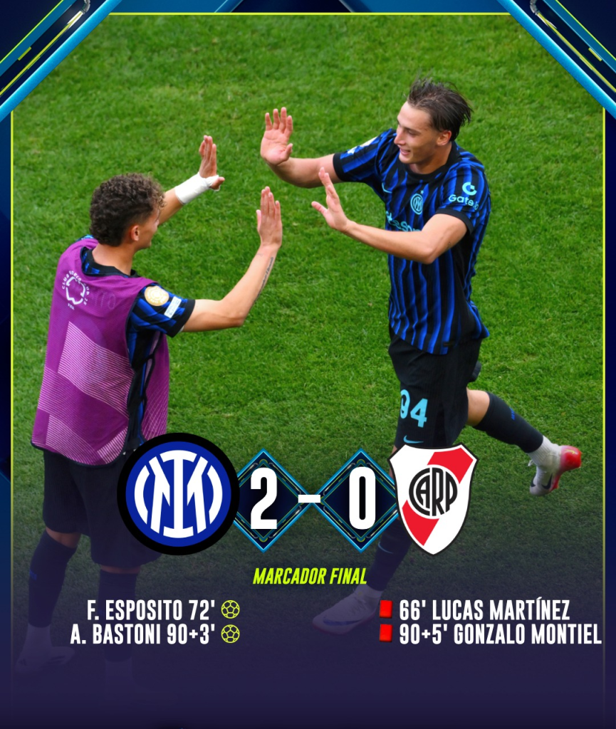 Inter dio un paso firme en el Mundial de Clubes al ganar 2-0 sobre River Plate y consolidarse como líder del Grupo E. El equipo italiano logró la victoria con goles de Francesco Pio Esposito y Alessandro Bastoni.