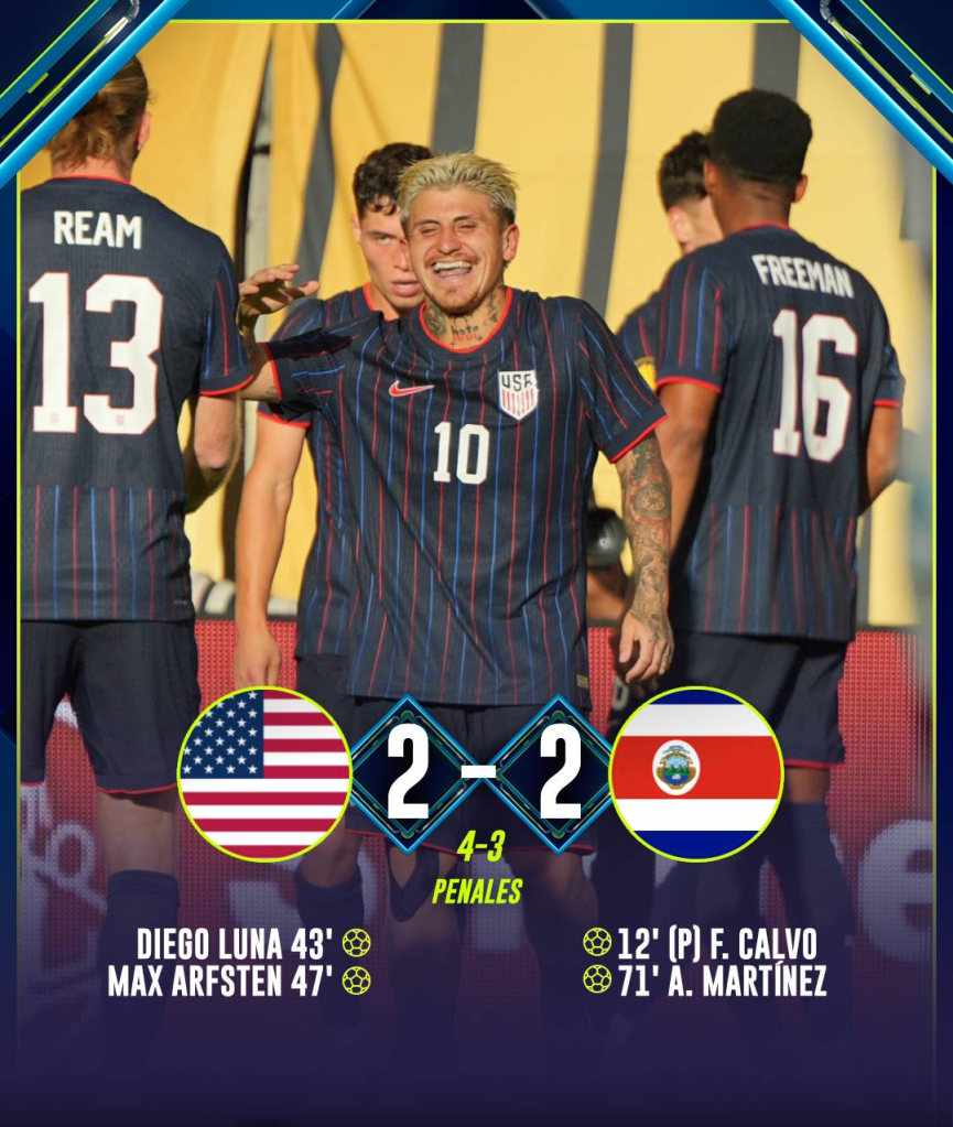 La eliminatoria se resolvió en una dramática tanda de penales en la que Matt Freese, arquero del New York City, salvó al ‘Team USA’ al atajar tres lanzamientos: de los experimentados Juan Pablo Vargas y Francisco Calvo y del joven Andy Rojas.