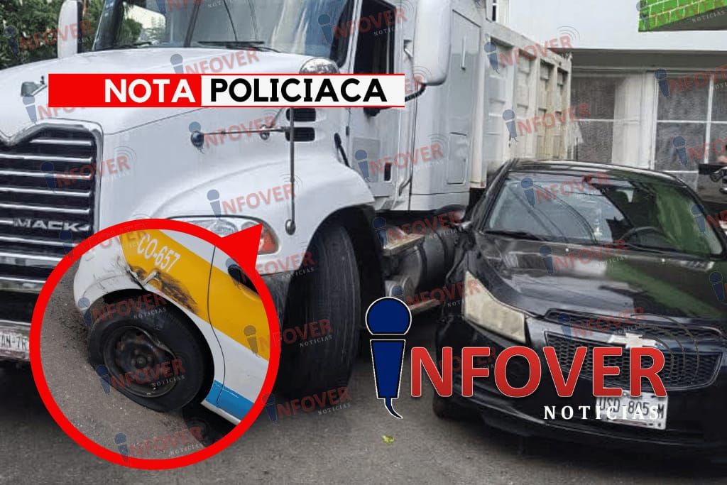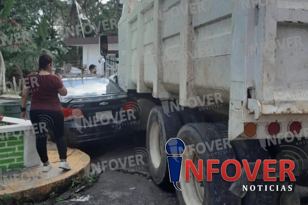 Fortín, Ver – Se registra accidente múltiple en la colonia Dante Delgado del municipio de Fortín, donde un carro de volteo, tras realizar una mala maniobra, impactó tres vehículos.