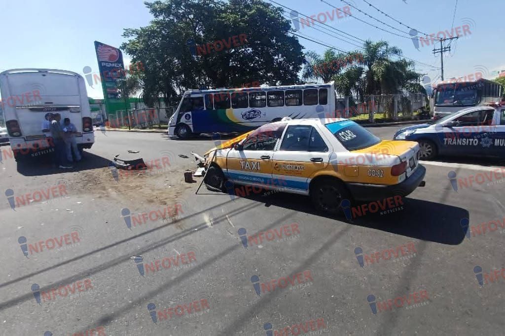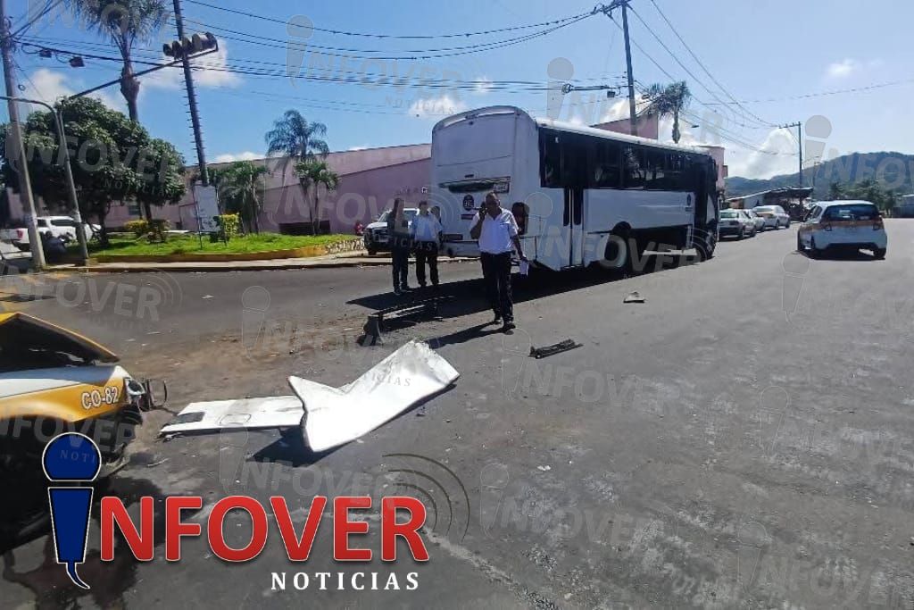 De acuerdo con los primeros reportes, un autobús con número económico 92 descendía para dar vuelta cuando impactó a un taxi con número económico 82, el cual subía por la misma vía y transportaba a dos pasajeros.