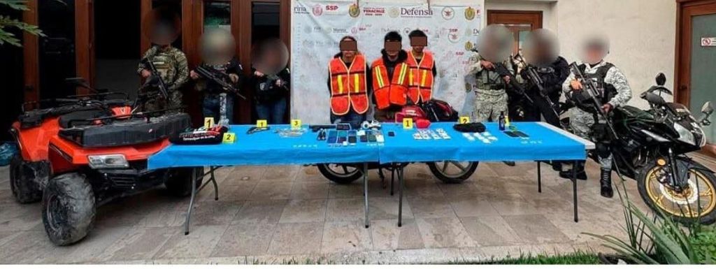 En el lugar, identificado como «narco tiendita» se aseguró marihuana, cristal, pipas, una prenda de ropa con un grabado alusivo a un grupo delictivo, libretas con anotaciones, réplicas de armas de fuego, cámaras de videograbación, una báscula gramera, baterías de diferentes marcas, teléfonos celulares, dinero en efectivo, motocicletas y una cuatrimoto.