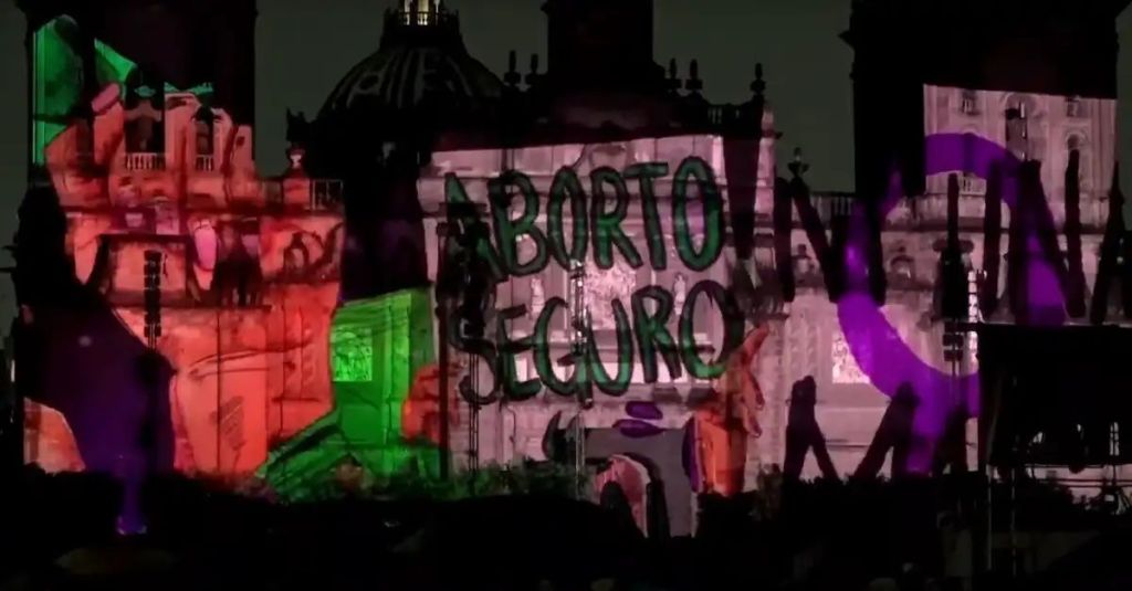 Imágenes captadas por testigos muestran imágenes proyectadas sobre la Catedral Metropolitana con la leyenda “Aborto Seguro”.