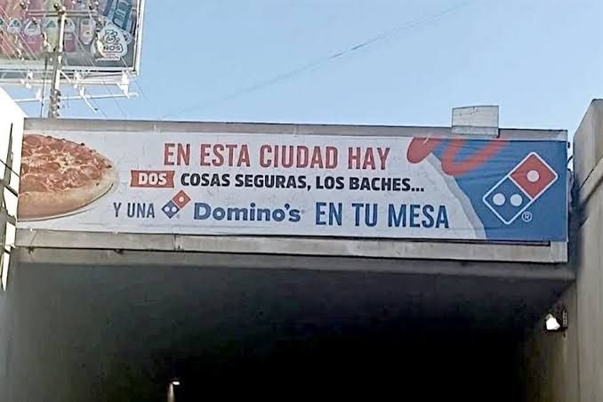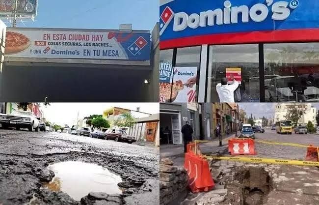 La franquicia de Domino´s pizza en San Luis Potosí se volvió viral tras colocar un anuncio publicitario que, a modo de crítica sarcástica, evidenció uno de los problemas más comunes en el país: los baches.