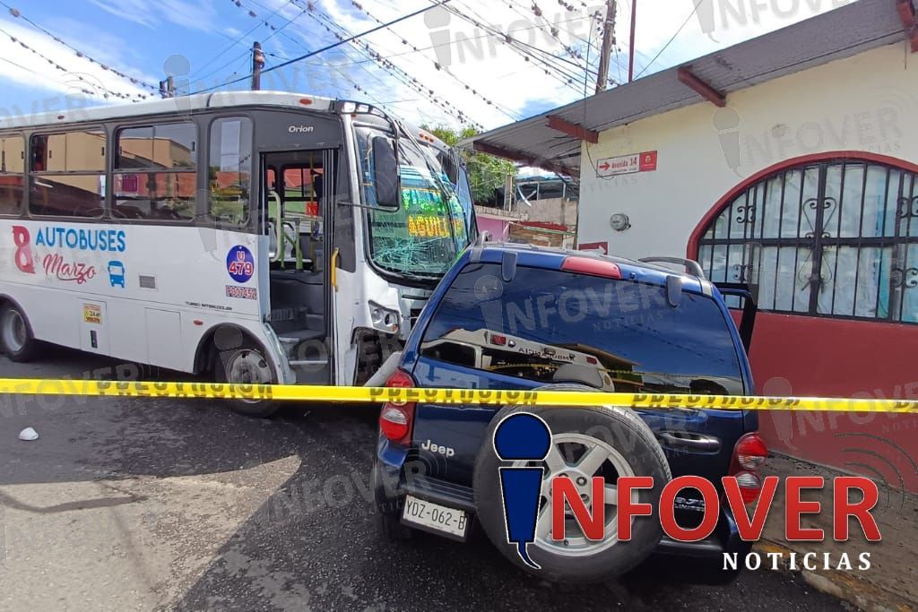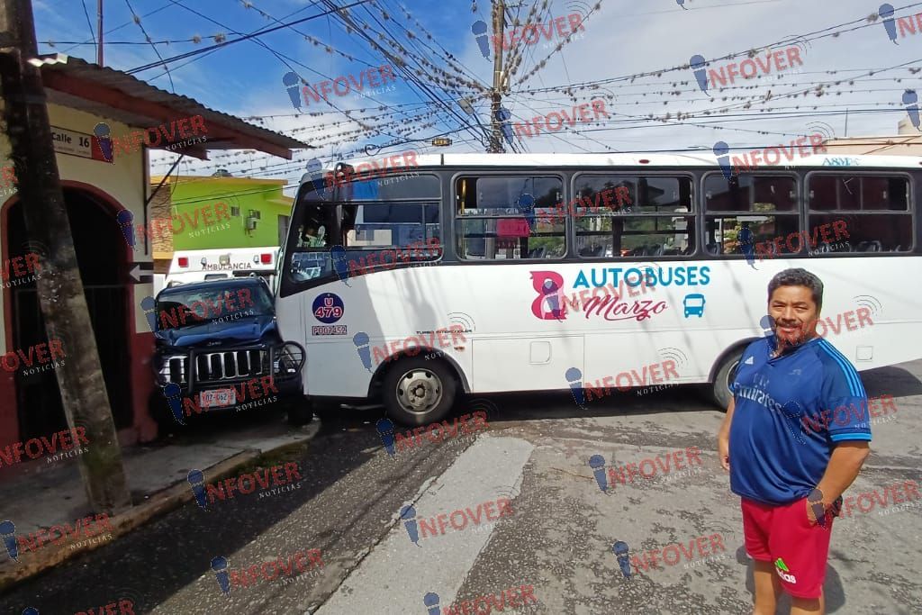 La falta de precaución al conducir provocó un accidente vehicular la mañana de este viernes en la avenida 14 y calle 16 de la colonia Los Filtros, donde una camioneta Jeep color azul no respetó el alto obligatorio y fue impactada por un autobús de pasajeros de la línea 18 de marzo.